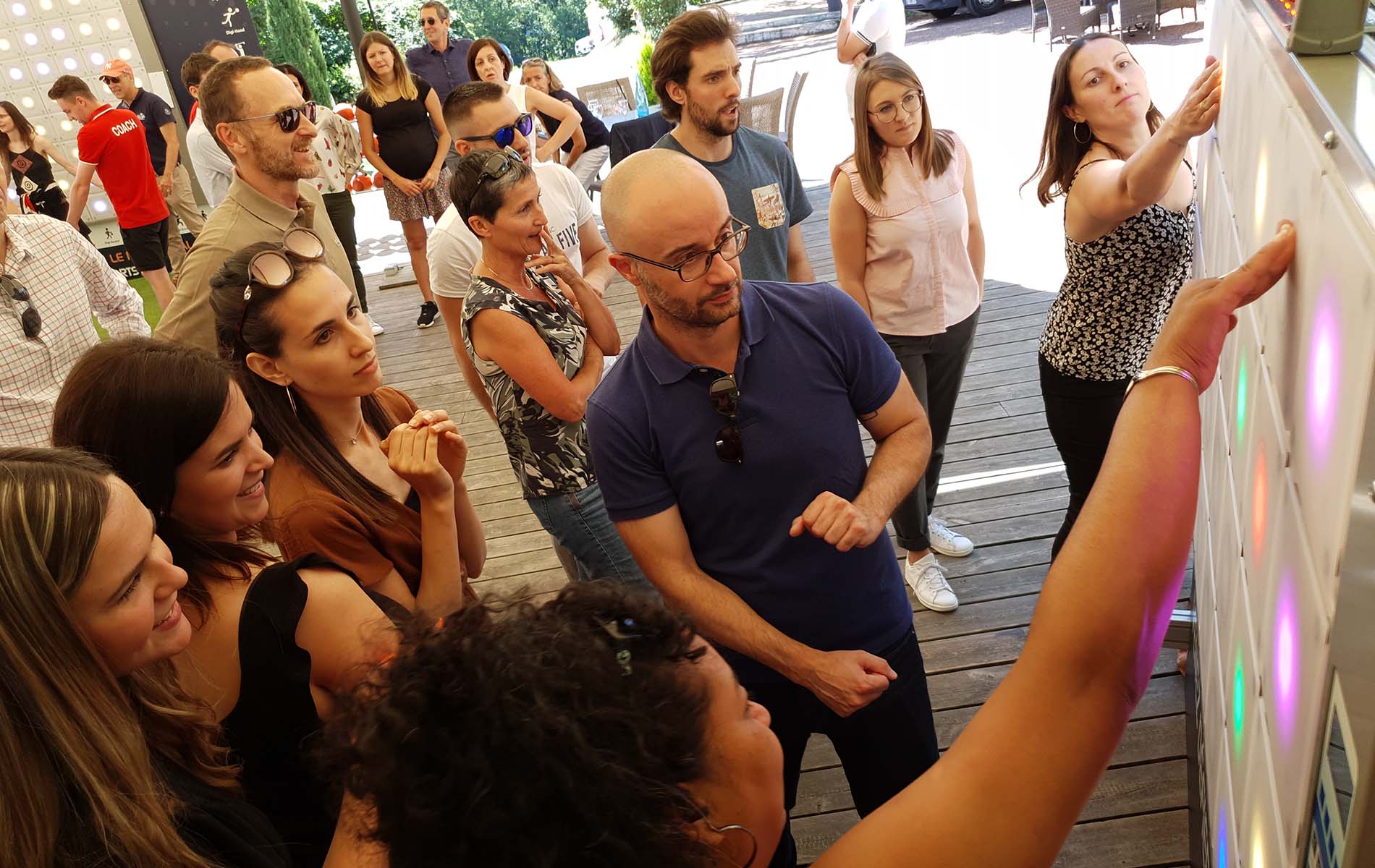 Sonore, lumineux et dynamique, il suscitera l’intérêt de tous et chacun pourra affronter lors de partie d’une minute le mur seul, en battle ou en équipe sur la base de différentes thématiques de jeu (réflexe, mémoire, stratégie, précision, sport).